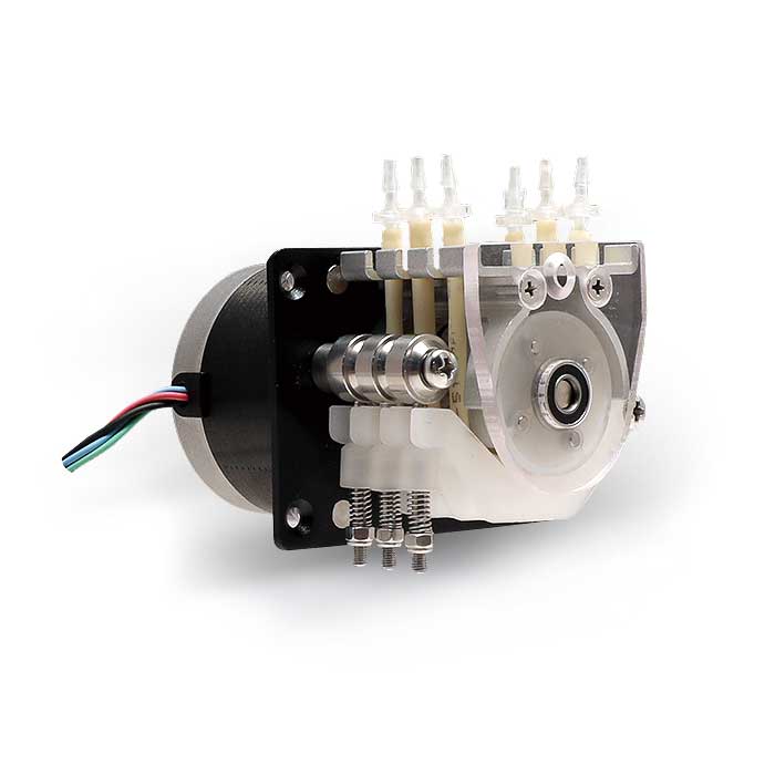 雷弗DWoem蠕動(dòng)泵系列泵頭,采用彈簧壓管結(jié)構(gòu),可提供平穩(wěn)的流量和出色的軟管壽命;壓管間隙可微調(diào),以適應(yīng)不同的壁厚及輸出更大的壓力;體積小巧,結(jié)構(gòu)緊湊,機(jī)械強(qiáng)度高,可匹配步進(jìn)電機(jī)、直流電機(jī)等多種電機(jī)。D W 10 - 1 \ D W1 0 - 2\ DW 10- 3適 合0. 8 ~ 1m m 壁厚 的軟 管,流 量范 圍0.0012~64ml/min;DW15-1適合1.6mm壁厚的軟管;流量范圍0.003~160ml/min。